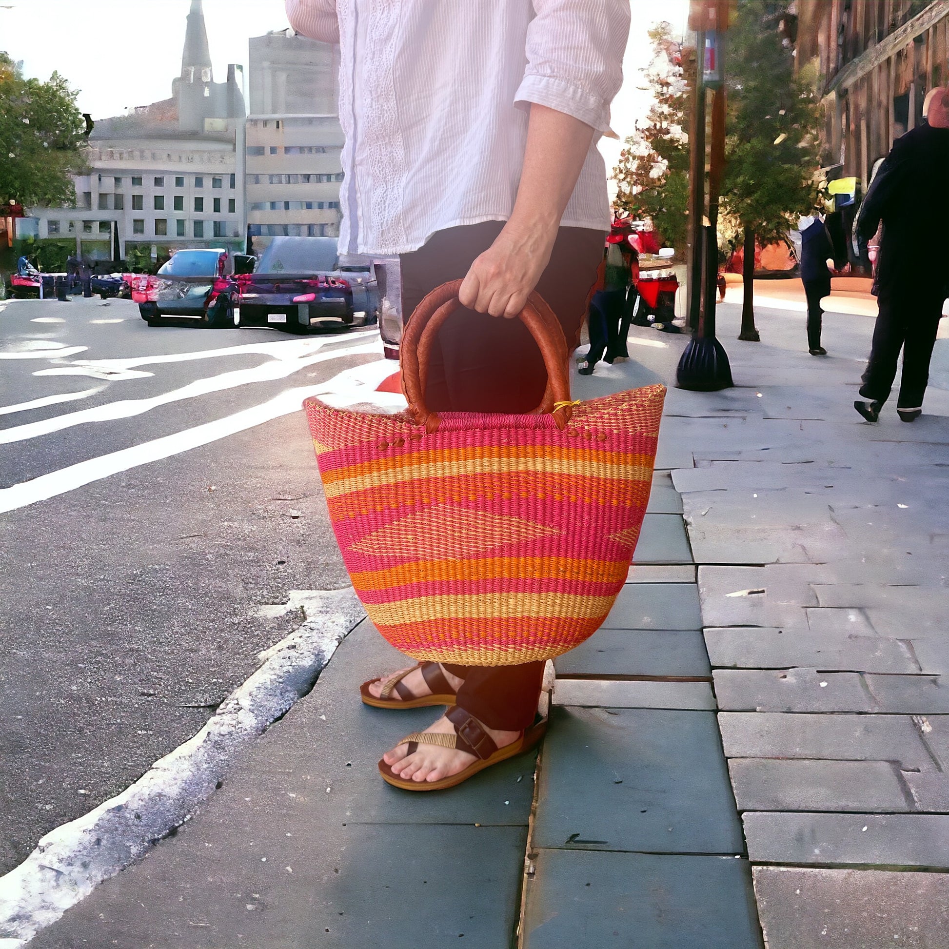 Handmade in Africa, leather trim , ethical & sustainable.
