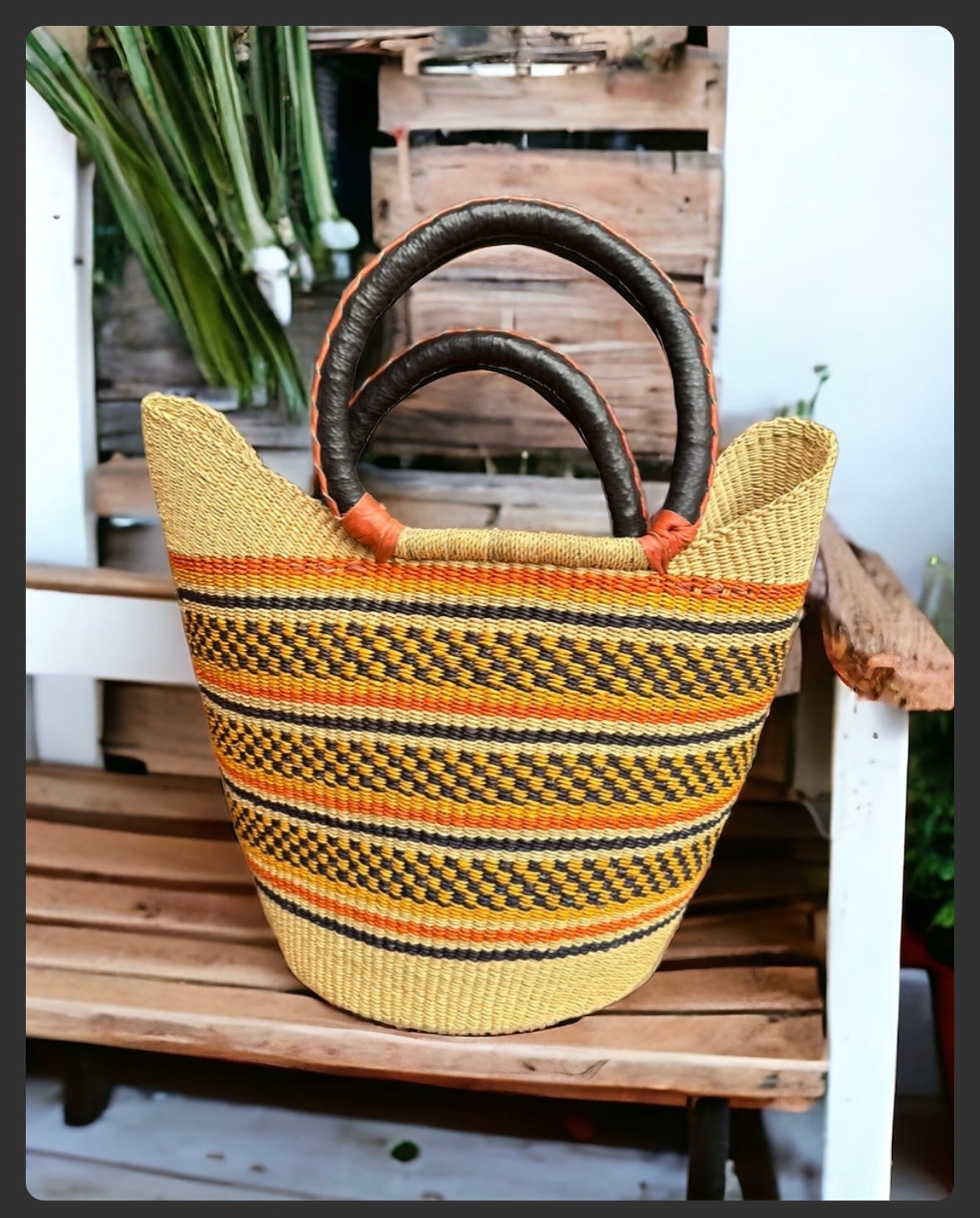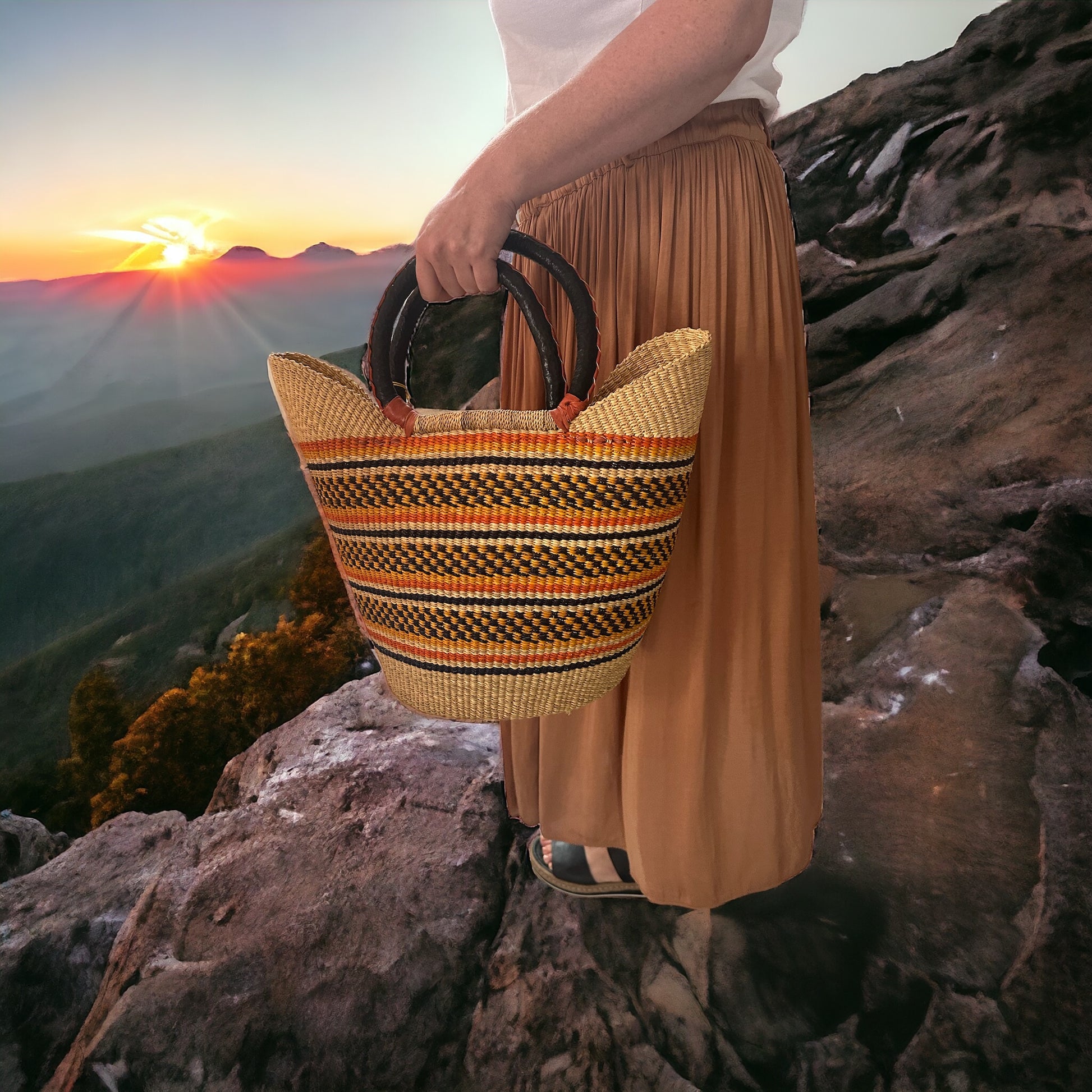 This basket is a bold statement in sustainability.Not only ethically sourced and environmentally friendly, it is a statement piece. Gone is the humiliation of dragging your green crumpled bag to grocer. You’ll be excited for grocery runs when you check out with your ‘ Safari Sunset’ Basket.