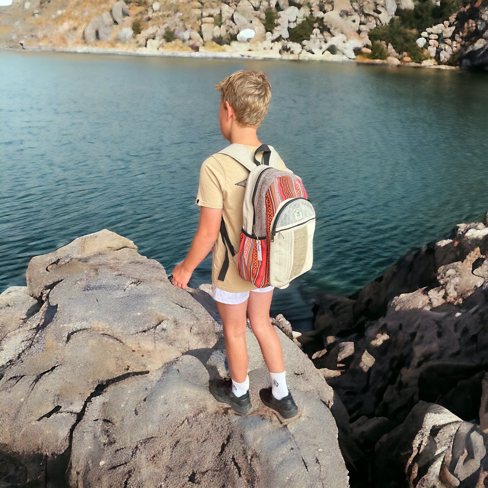 Boho backpack with padded shoulder straps for extra comfort. Cotton lined interior with laptop/tablet pocket. Zippered pocket on front for quick access items plus a deep pocket on each side.