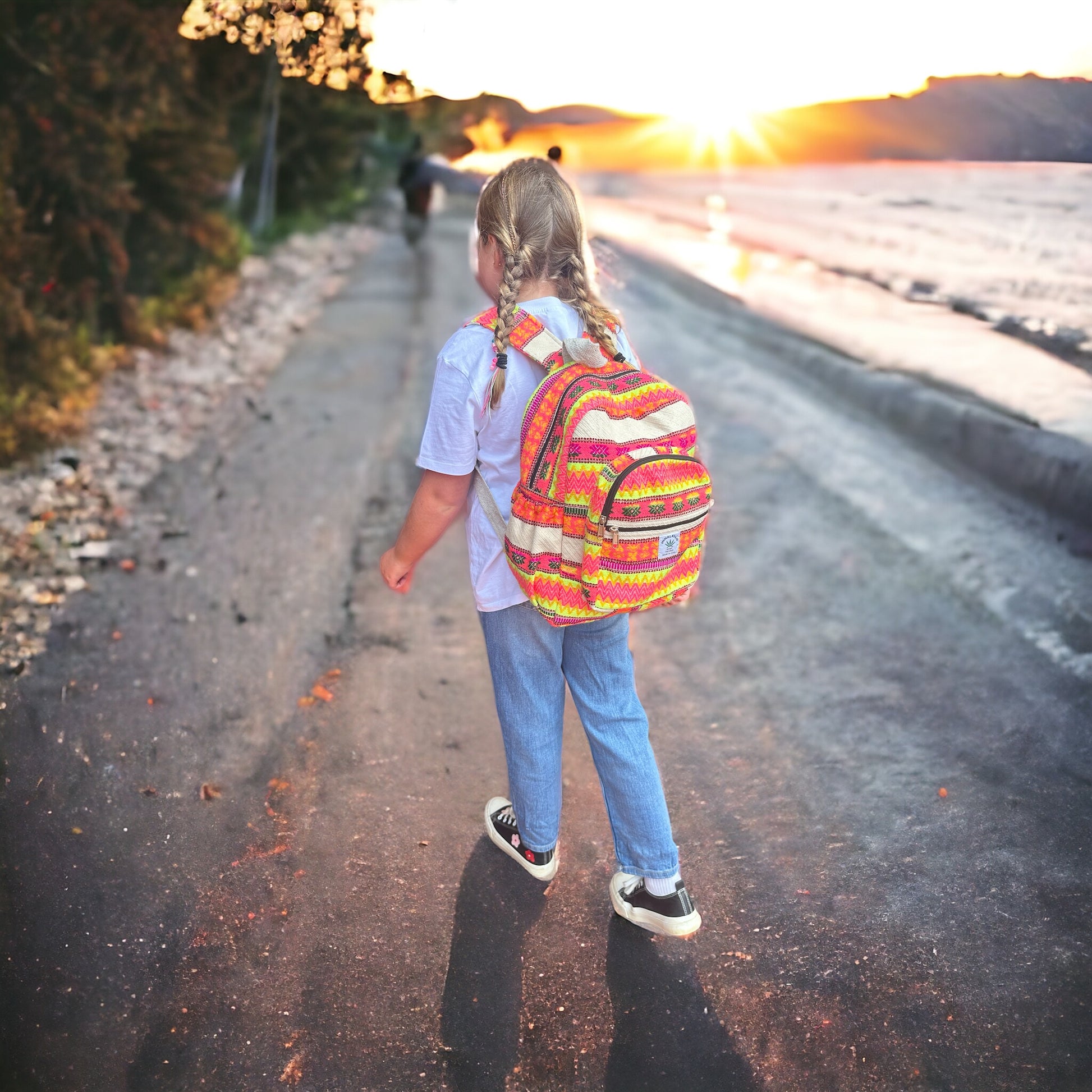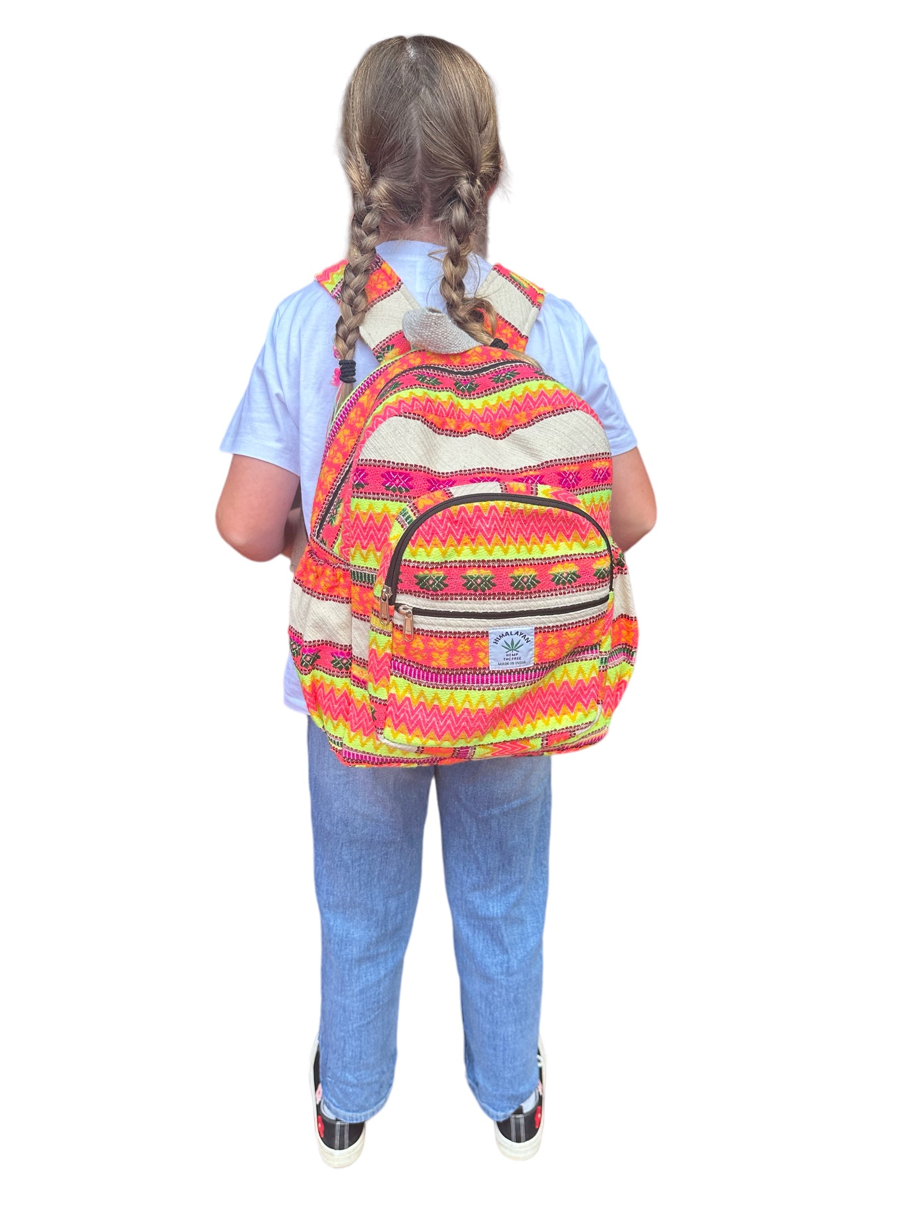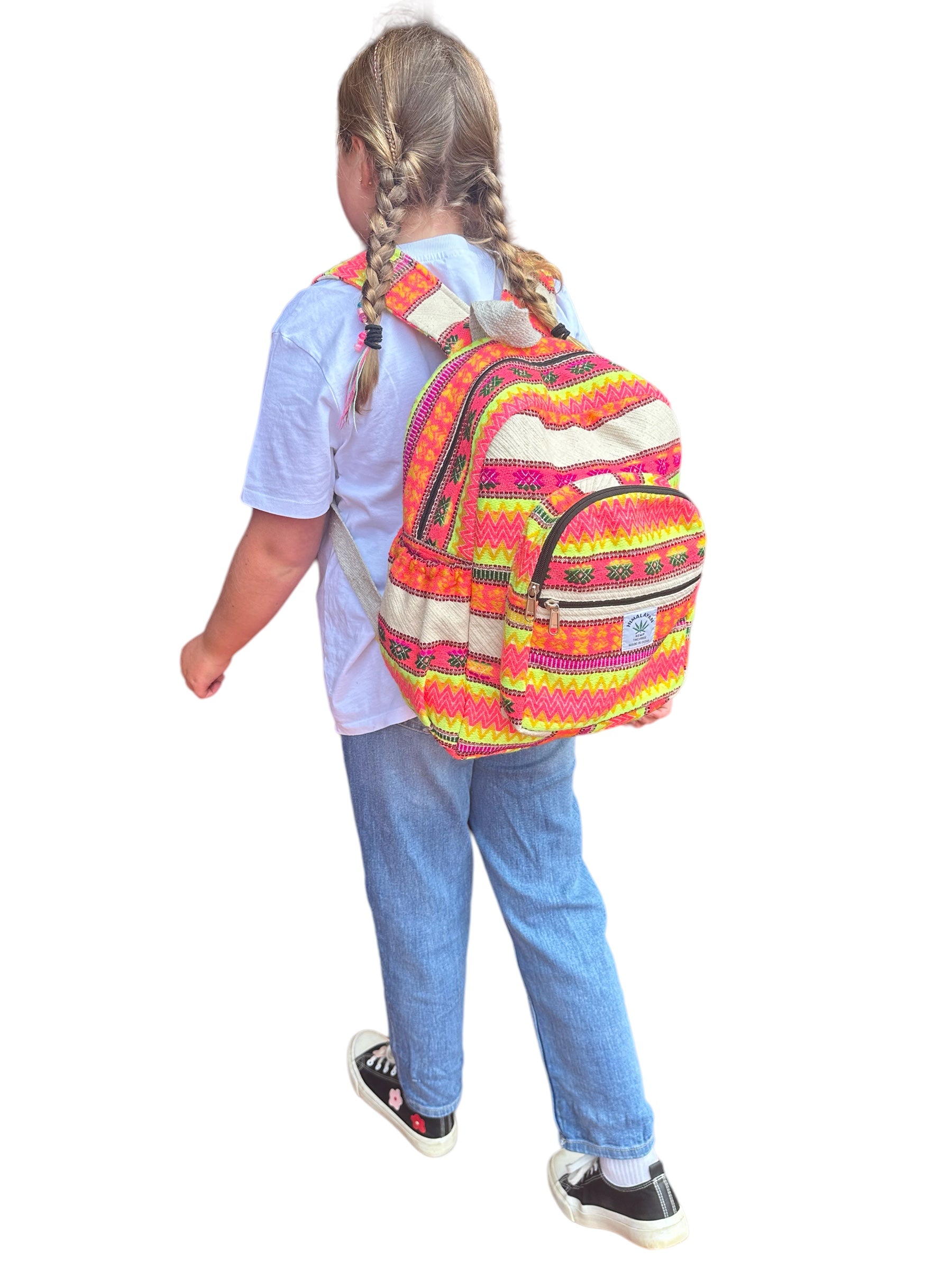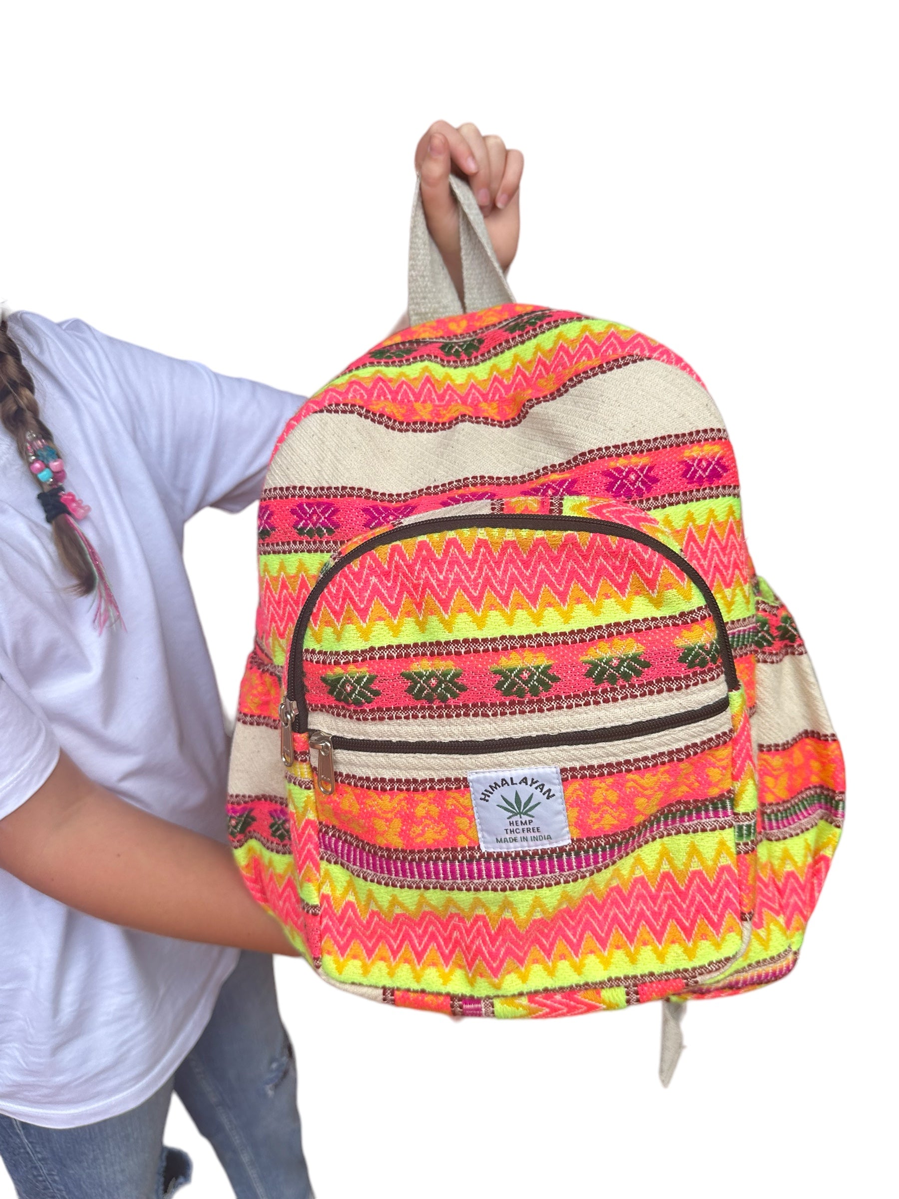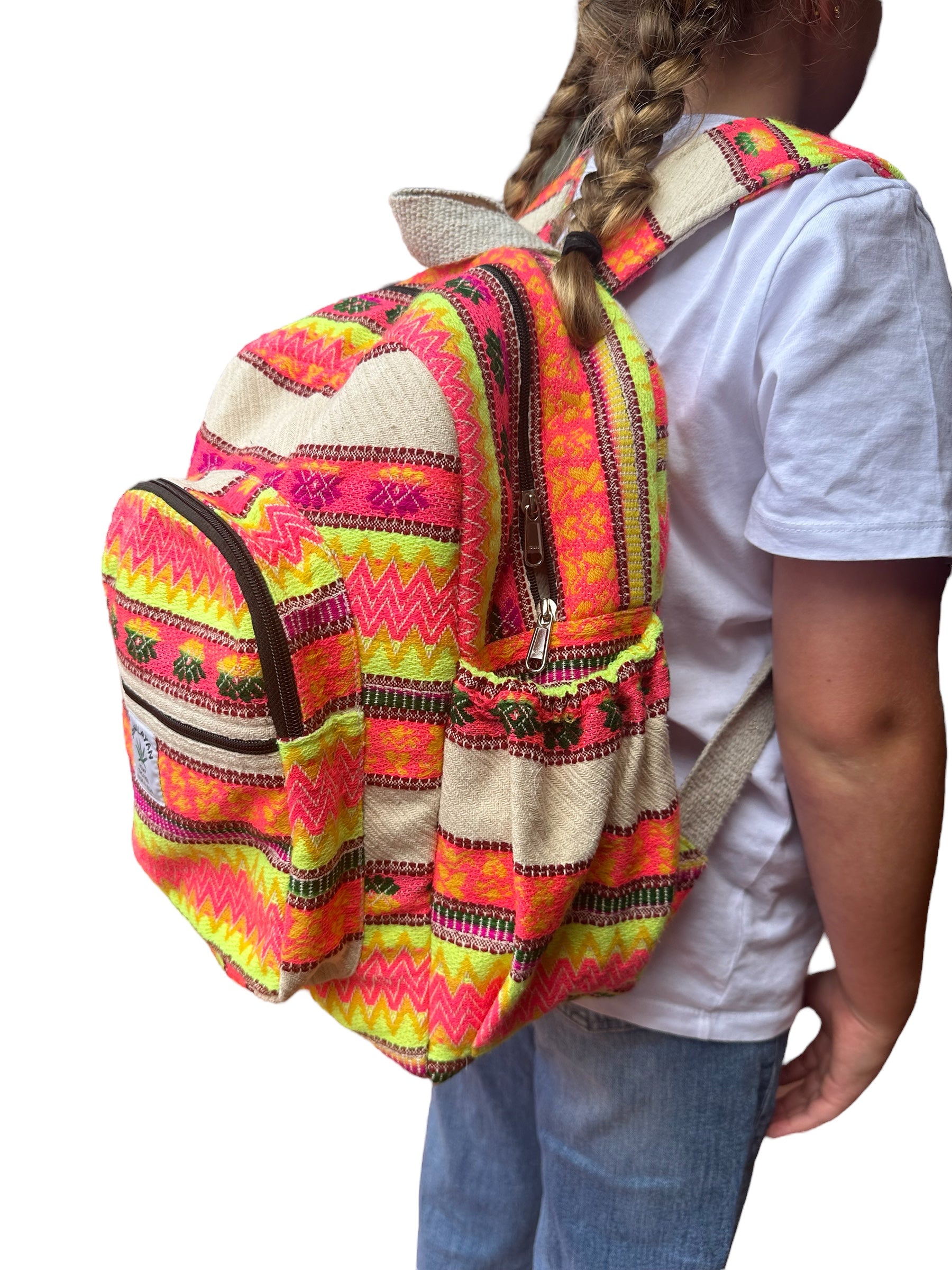 Boho backpack with padded back & shoulder straps for extra comfort. Cotton lined interior with zippered front pockets for quick access items plus a deep pocket on each side.