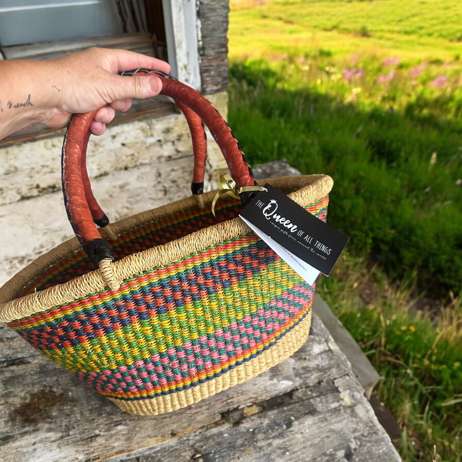 Handmade in Africa, leather trim , ethical & sustainable.