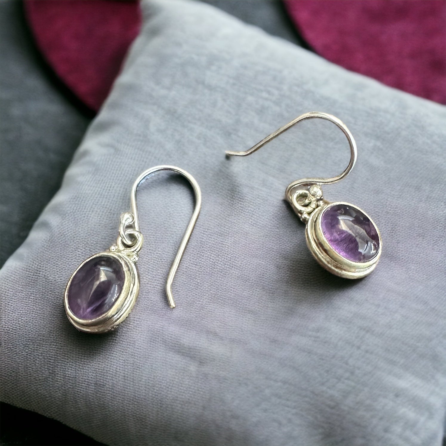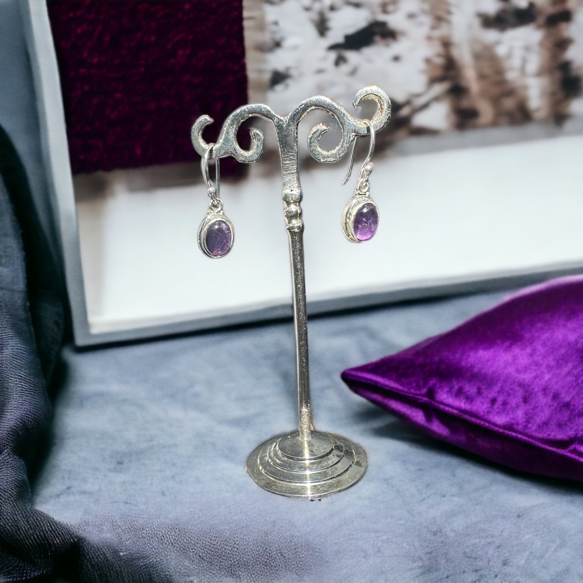 Amethyst earrings feature the beautiful purple gemstone amethyst. Amethyst is known for its calming and spiritual qualities. Amethyst earrings come in various designs and settings, often set in sterling silver or other metals. They can symbolize inner peace, clarity, and a connection to spirituality, making them a popular choice for both fashion and symbolism.
